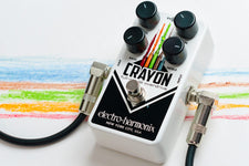 The EHX Crayon Full-Range Overdrive is a versatile overdrive with independent Bass and Treble controls and an open frequency range that provides players with a musical alternative to customary mid-focused overdrive pedals. It delivers a range of sounds going from a suggestion of dirt to full-on distortion and is equally impressive all by itself or when driving another overdrive pedal.